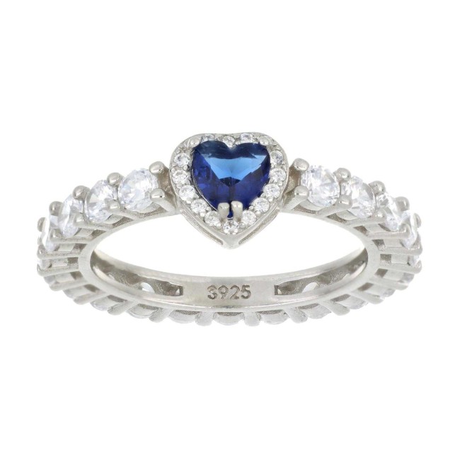 Anello Cupido chiuso con zirconi e cuore di cristallo blu